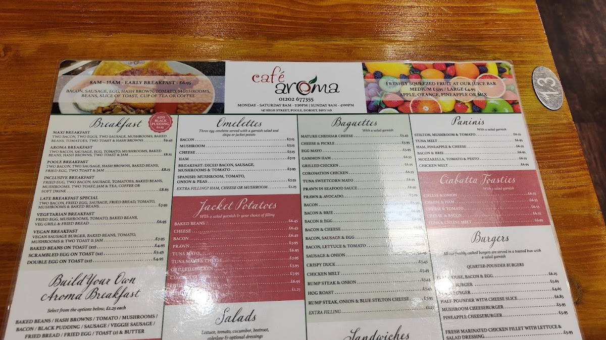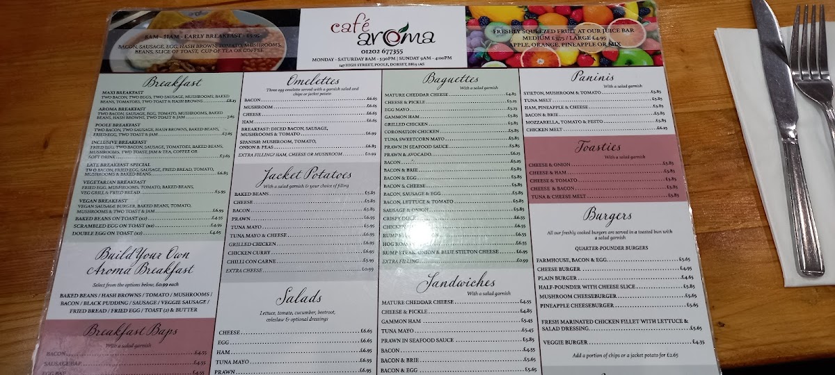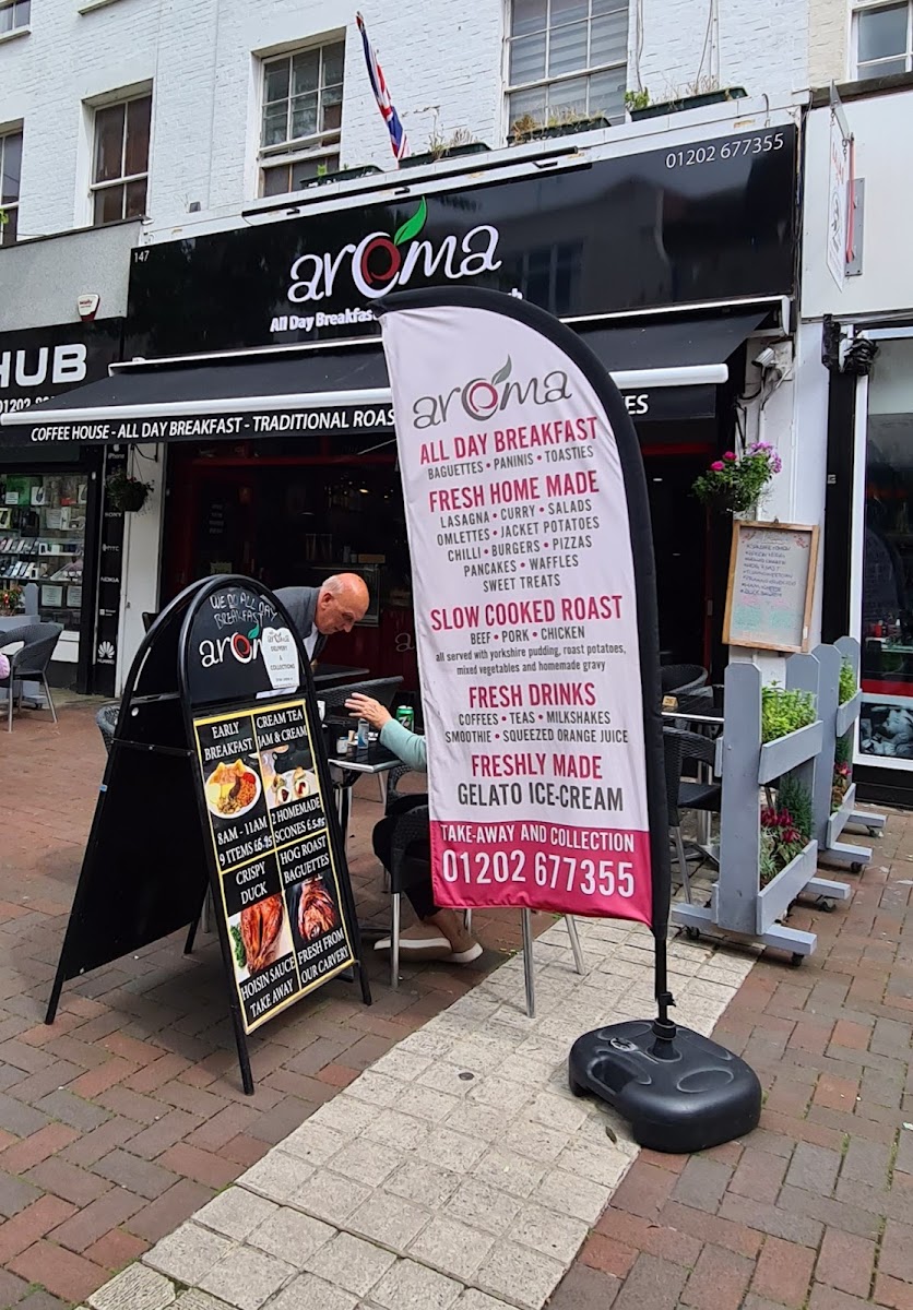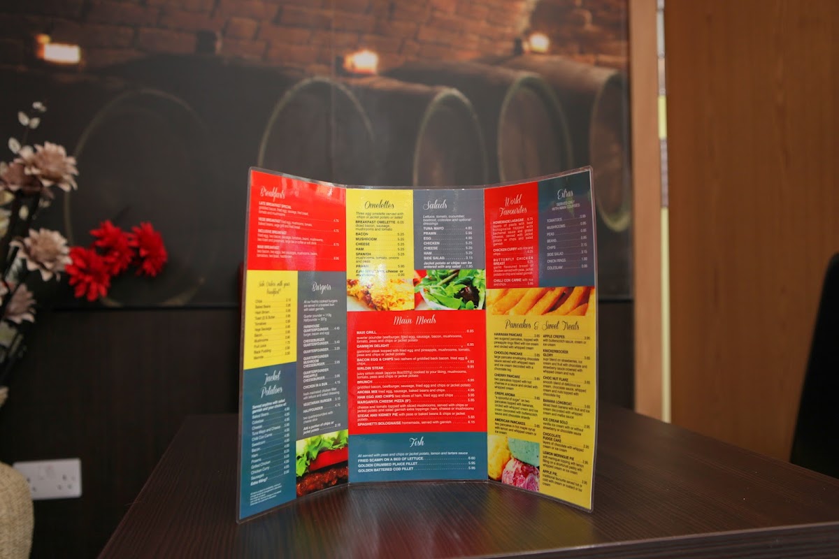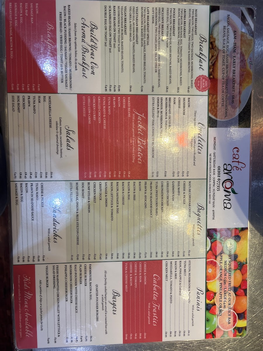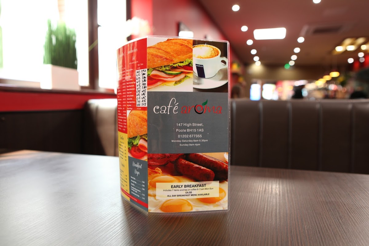 Welcome to Cafe Aroma Poole, where delightful culinary creations await you at 147 High St, Poole BH15 1AS, United Kingdom. Our menu is packed with an array of delectable dishes that cater to every palate. Start your day with our hearty Full English Breakfast, or enjoy a comforting Chicken Nuggets and Fries combo for a nostalgic twist. Be sure to treat yourself to our creamy Cappuccino or indulgent Hot Chocolate while you unwind. For a light yet satisfying bite, our Tuna Melt Panini and Rump Steak Onion and Blue Cheese Panini are must-tries. If you have a sweet tooth, don’t miss our rich Chocolate Pudding and Custard or our delightful Carrot Cake. With tempting options like Crispy Duck, Butterfly Chicken Breast, and Cheesy Chips, there's something for everyone at Cafe Aroma Poole. Come savor these specialties and experience the warm ambiance that makes us a favorite among locals and visitors alike!